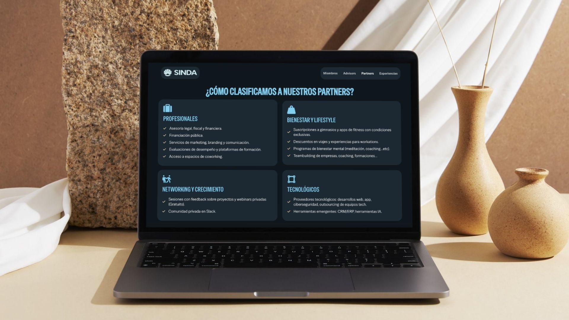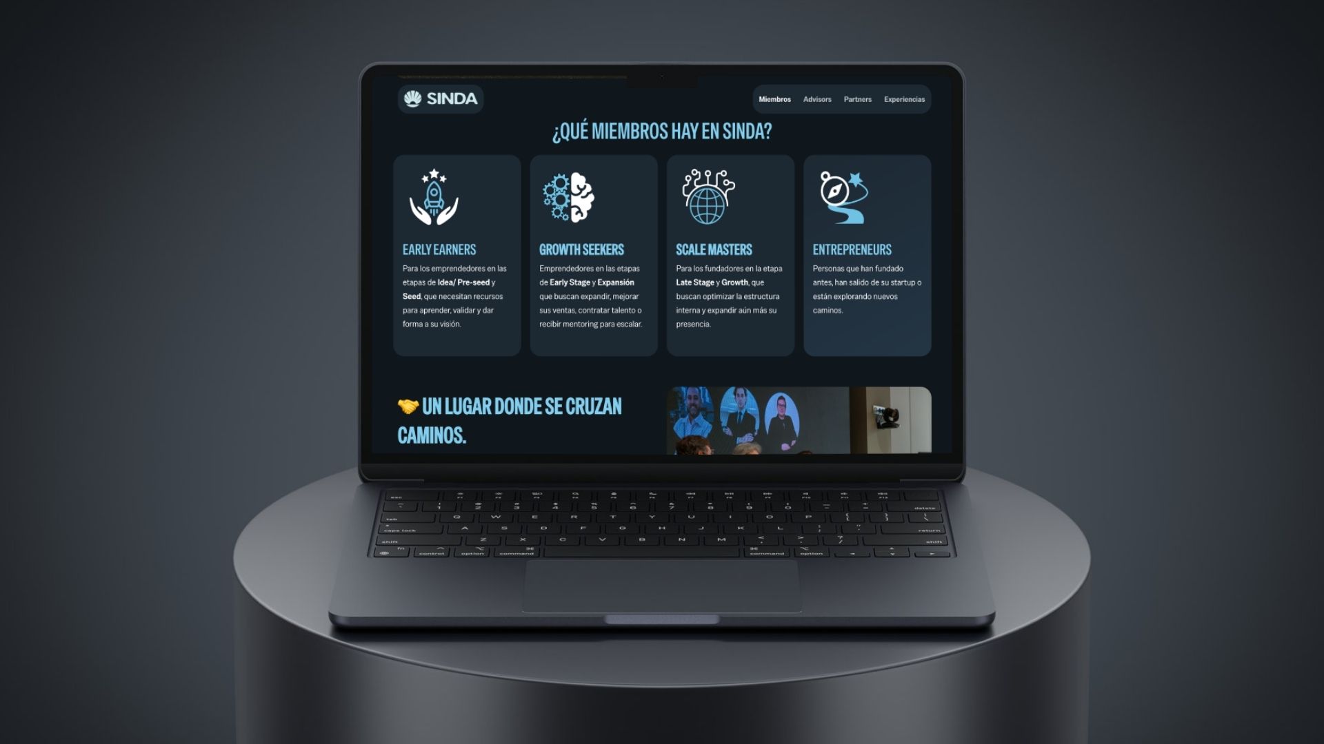 03. Ordenamos secciones de miembros, advisors, partners y experiencias para reforzar percepción de valor.