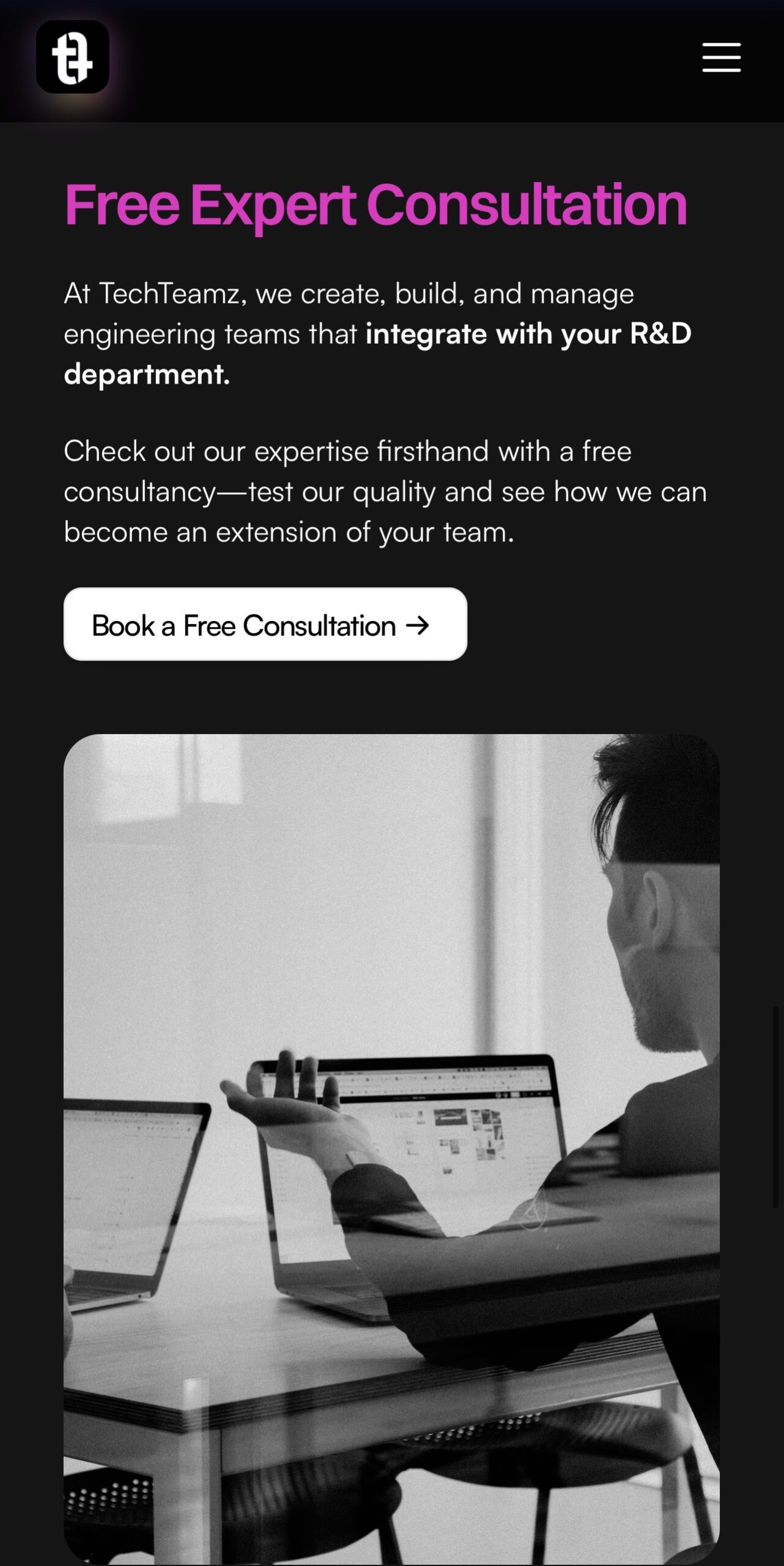 Tech Teamz ofrece equipos de ingeniería a medida y ayuda a empresas a construir capacidad técnica con menos carga de gestión y menor riesgo operativo.